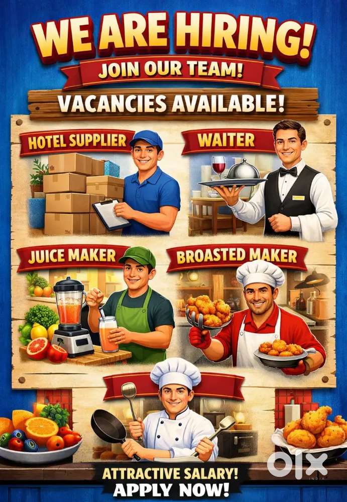 - ₹ 11000 - 12000 | MonthlyWanted Helpers in hotelLaxmi Venkata Nagar, AnantapurToday