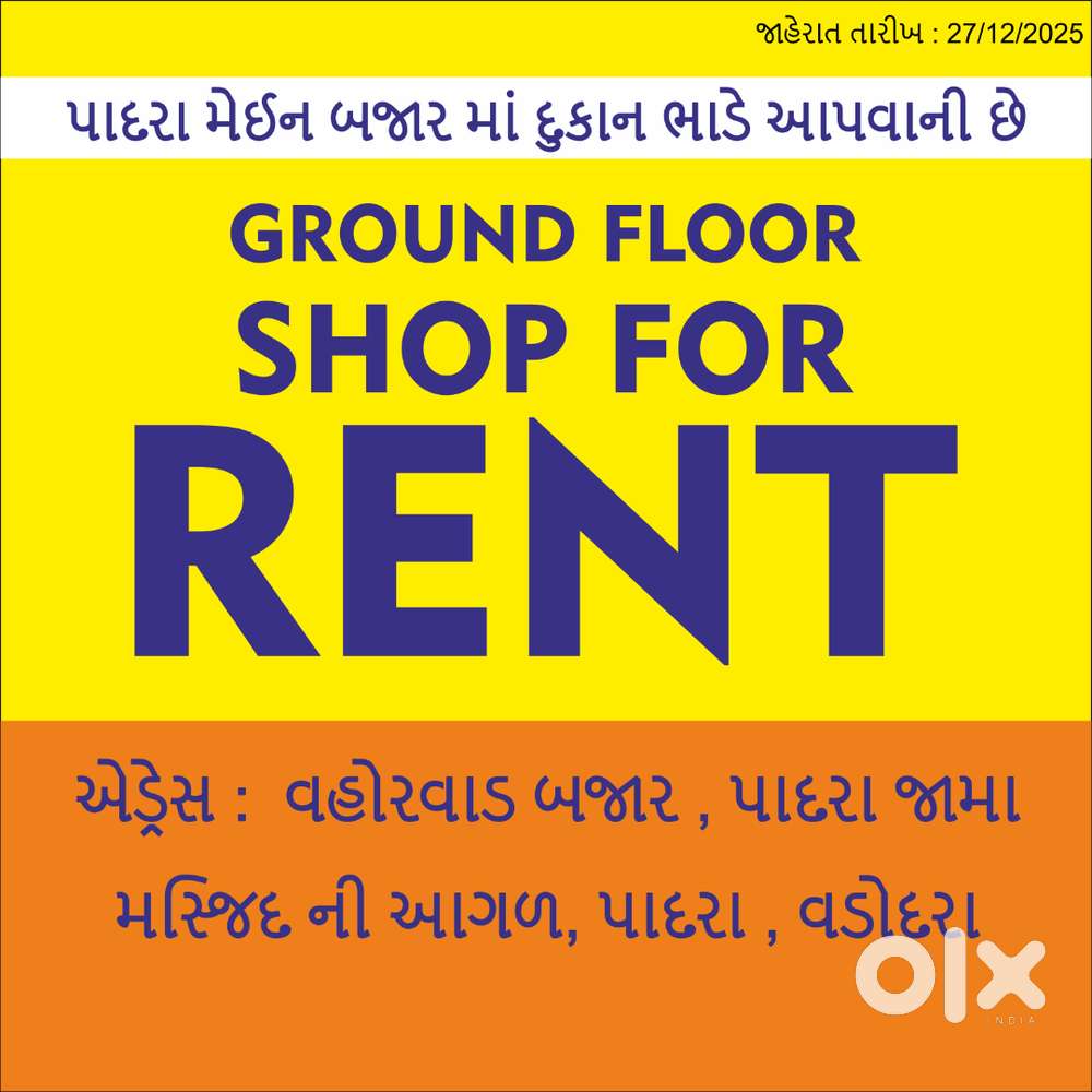 - ₹ 25,000SHOP FOR RENT IN PADRA MAIN BAJARTandalja, VadodaraYesterday