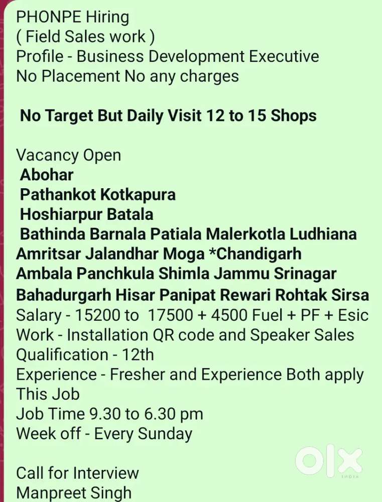 - ₹ 15000 - 20000 | MonthlyRequired store Sales Executive in Hariana HoshiarpurBassi Babu Khan 414, HarianaToday