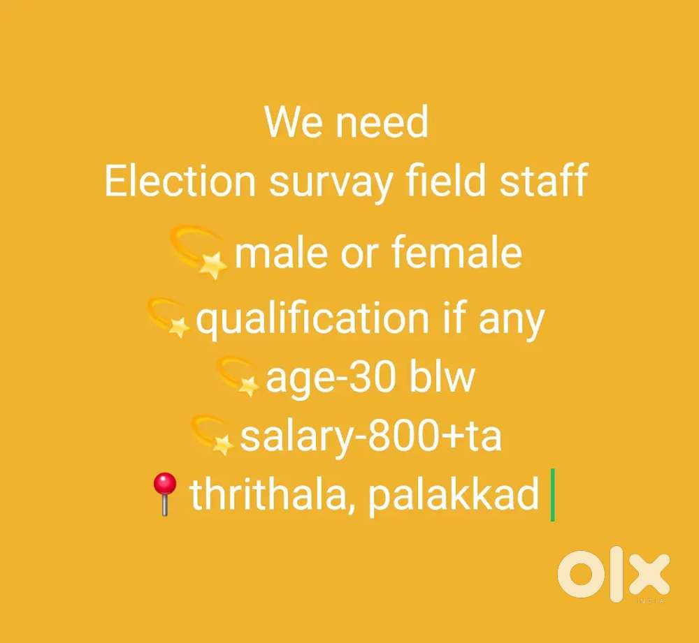 - ₹ 10000 - 15000 | WeeklyElection Survay staff-kunnamkulam, thrissurMangad, KunnamkulamYesterday