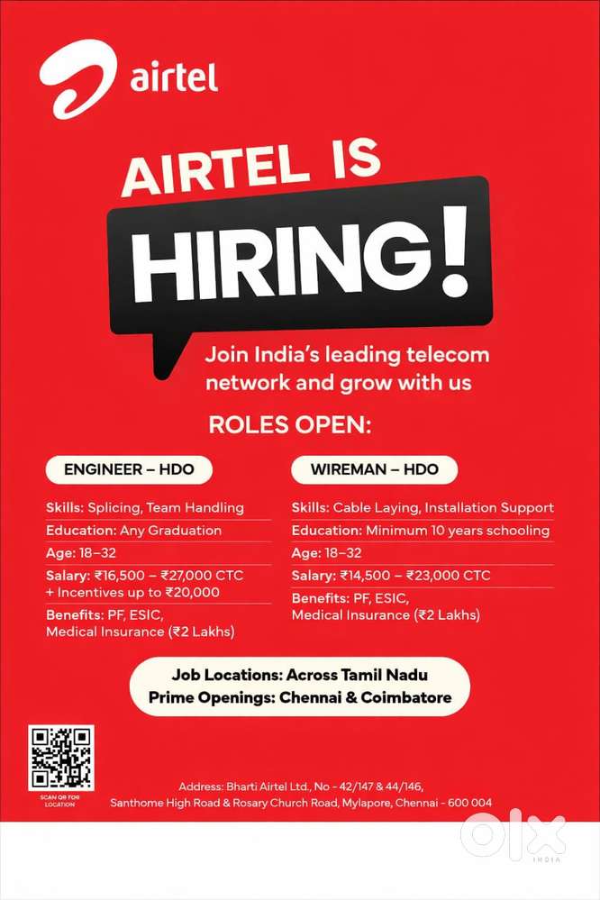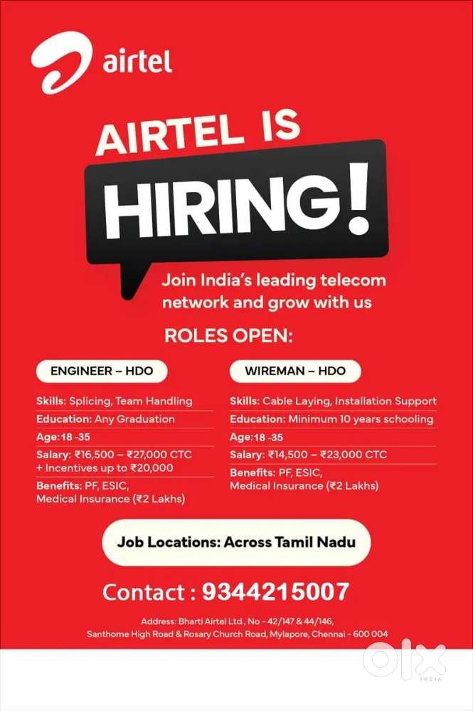 - ₹ 19000 - 27000 | MonthlyAirtel Fibre Installation EngineerEkkattuthangal, ChennaiToday