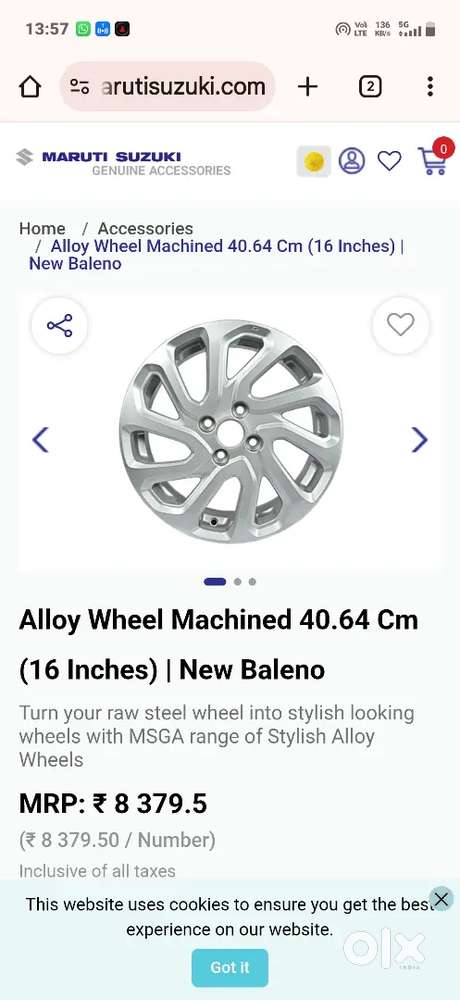 - ₹ 23,000R16 alloy wheels maruti suzuki just 3 months oldPedda Waltair, Visakhapatnam2 days ago
