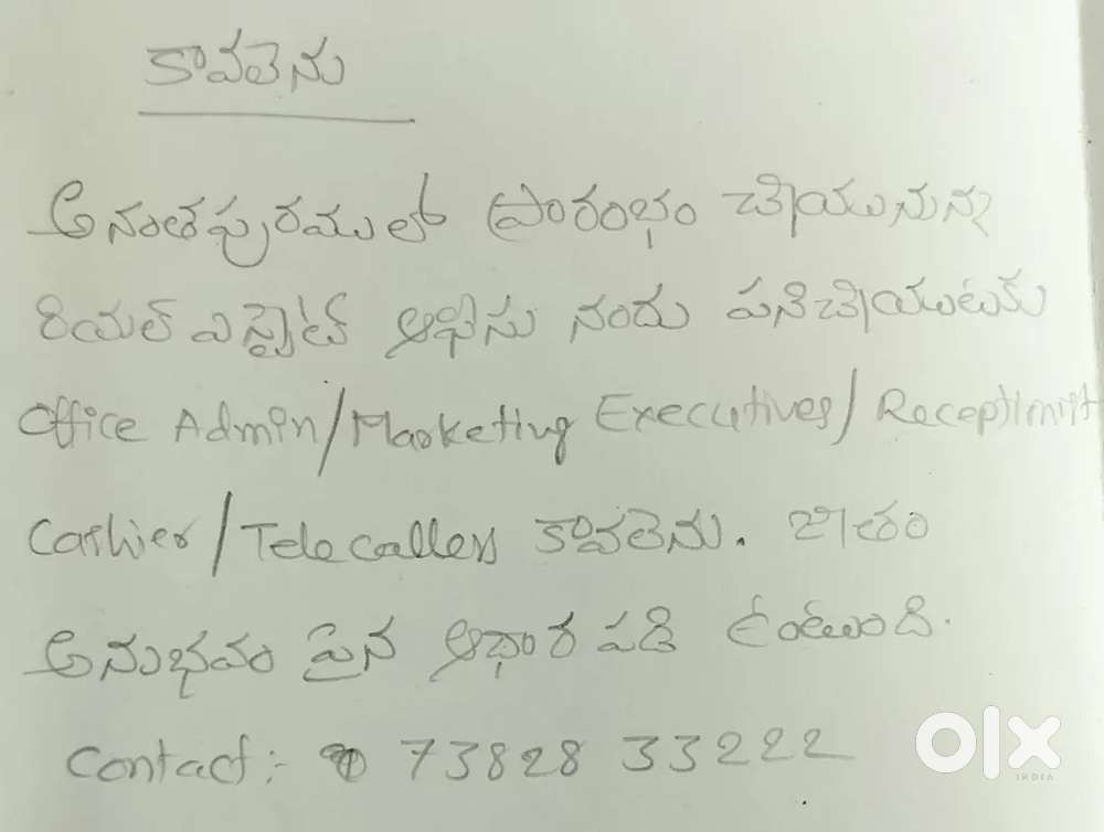 - ₹ 10000 - 20000 | MonthlyReal estate/ Marketing Executives/receptionist/Office admin/TelecallerSurya Nagar, Anantapur2 days ago