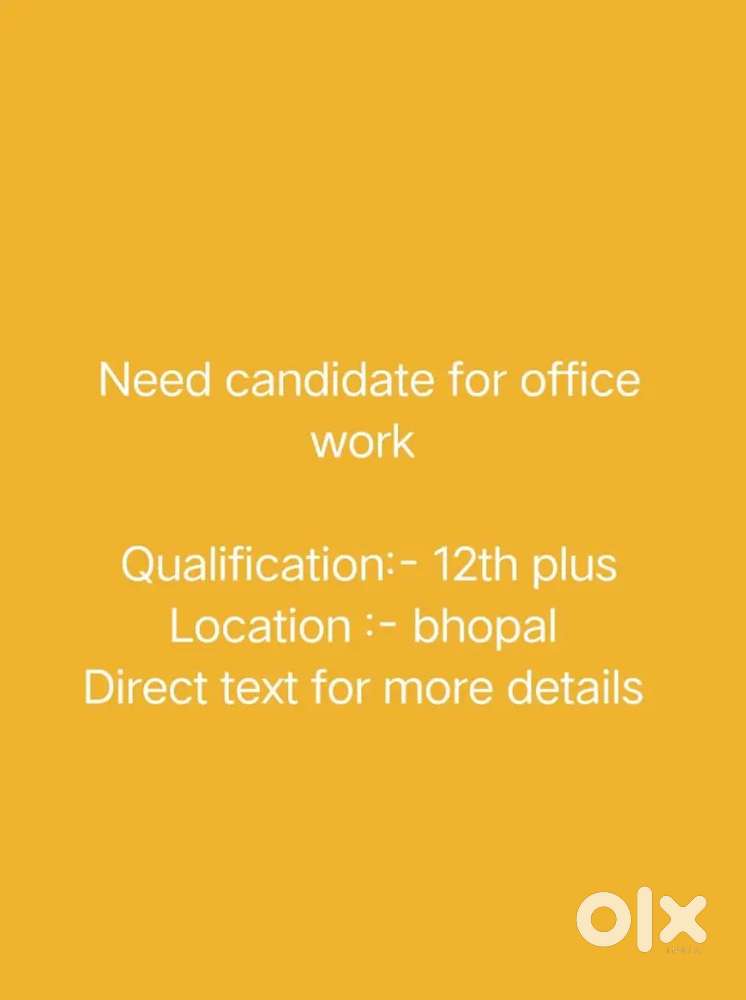 - ₹ 10000 - 18000 | MonthlyNeed urgently candidateMP Nagar, BhopalToday