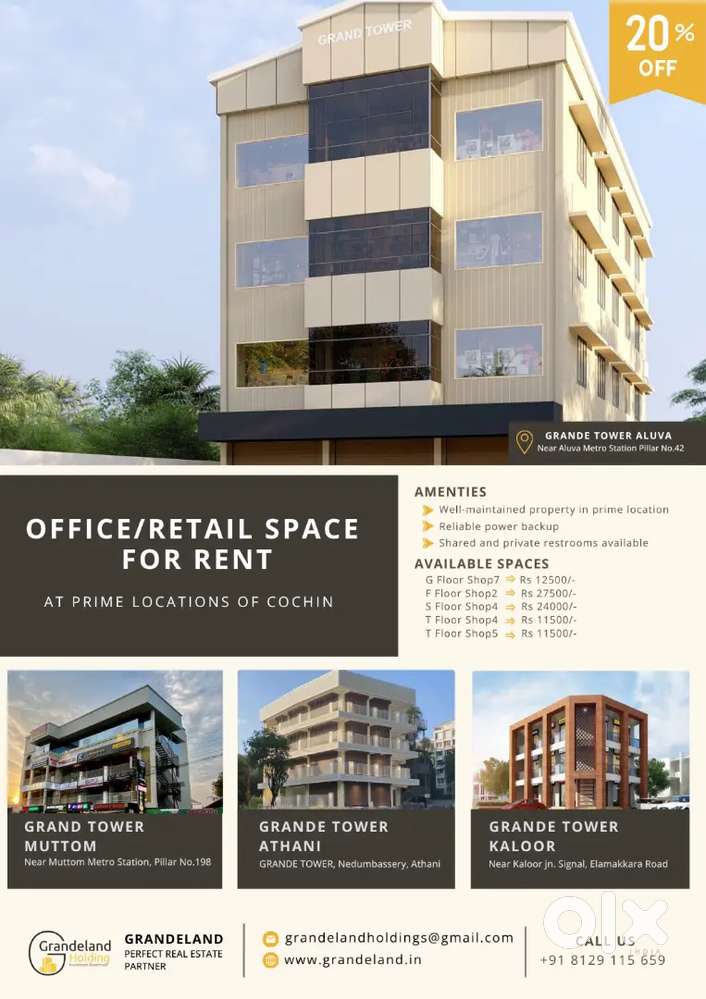 - ₹ 15,500Office / Retail Space Available for Rent at Aluva Near Metro StationPulinchode Junction, Aluva4 days ago