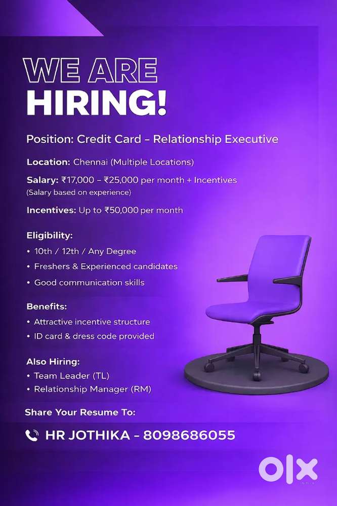 - ₹ 17000 - 25000 | MonthlyCredit Card - Relationship ExecutiveMaduravoyal, ChennaiToday