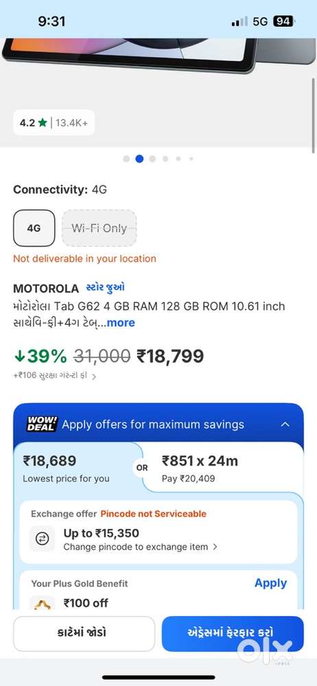 - ₹ 9,999Motorola Tab G62 4 GB RAM 128 GB ROM 10.61 inchJamnagar, GujaratToday