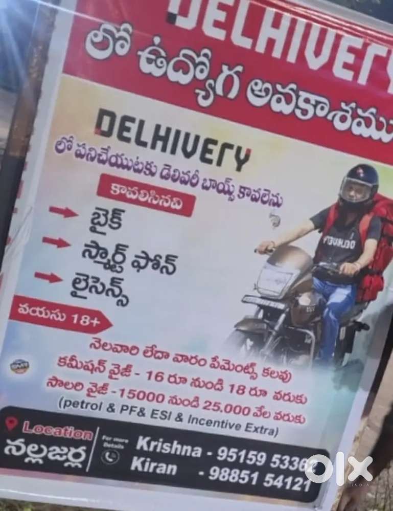 - ₹ 14000 - 16000 | MonthlyWanted delivery persons @ BimavaramKamuju Vari Palem, Bhimavaram2 days ago