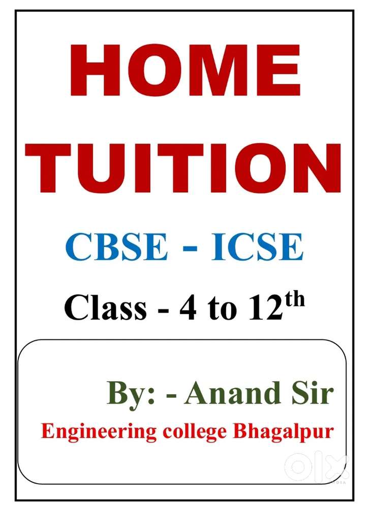 - Home tuition class nursery to 10th CBSE ICSE BIHAR BOARD ALL SUBJECTDeep Nagar, Bhagalpur28 Nov