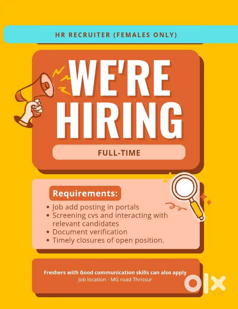 - ₹ 10000 - 25000 | MonthlyHiring Sales, Supervisor, Telecaller & Maintenance - ThrissurKoorkenchery, ThrissurToday