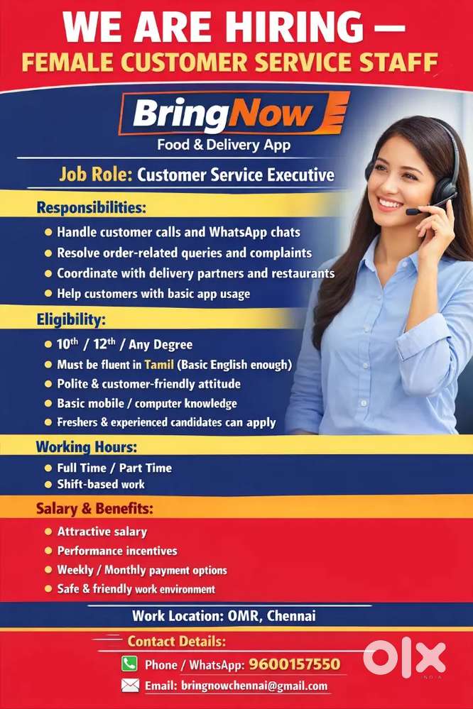 - ₹ 15000 - 18000 | MonthlyCustomer care supportNavalur, ChennaiToday