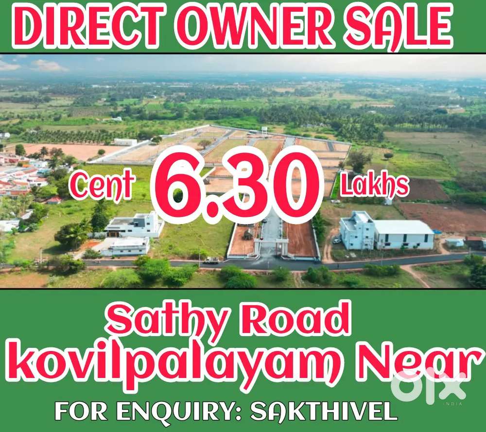 - ₹ 6,30,000Kovilpalayam Near sathy Road Near dtcp site & Plot SaleSaravanampatti, Coimbatore22 Mar