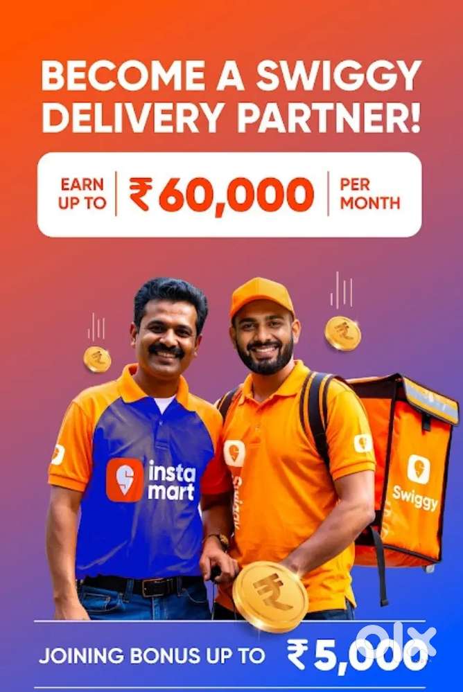 - ₹ 40000 - 60000 | WeeklySwiggy delivery job flexible hour'sSBI Staff colony Basaweshwarnagar, Bengaluru16 Dec