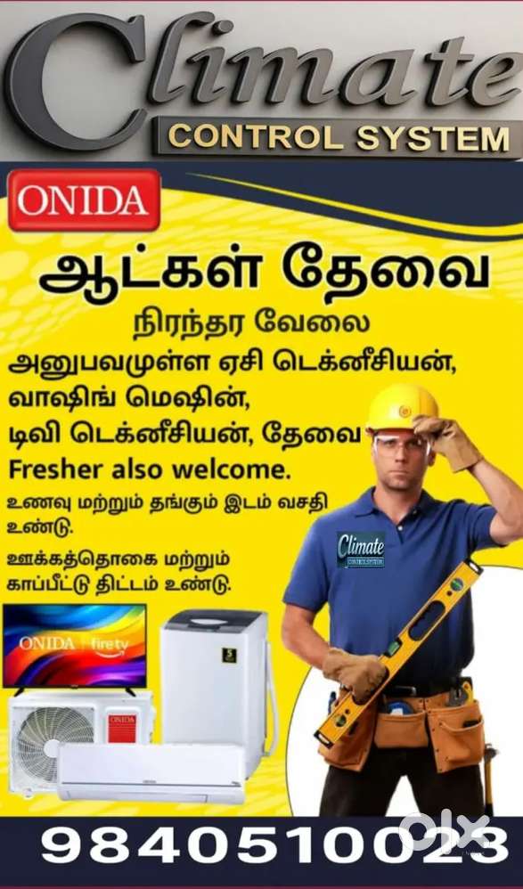 - ₹ 10000 - 20000 | MonthlyHelpers and technician wanted for ac fridge Wm centerVelacheri AGS Colony, Chennai10 Dec