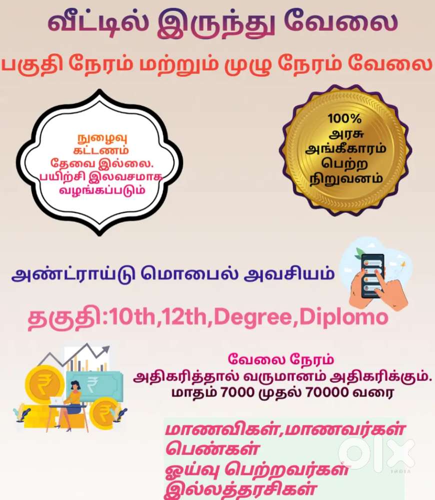 - ₹ 10000 - 15000 | MonthlyWork from homeKamarajar Nagar, Ariyalur21 Dec