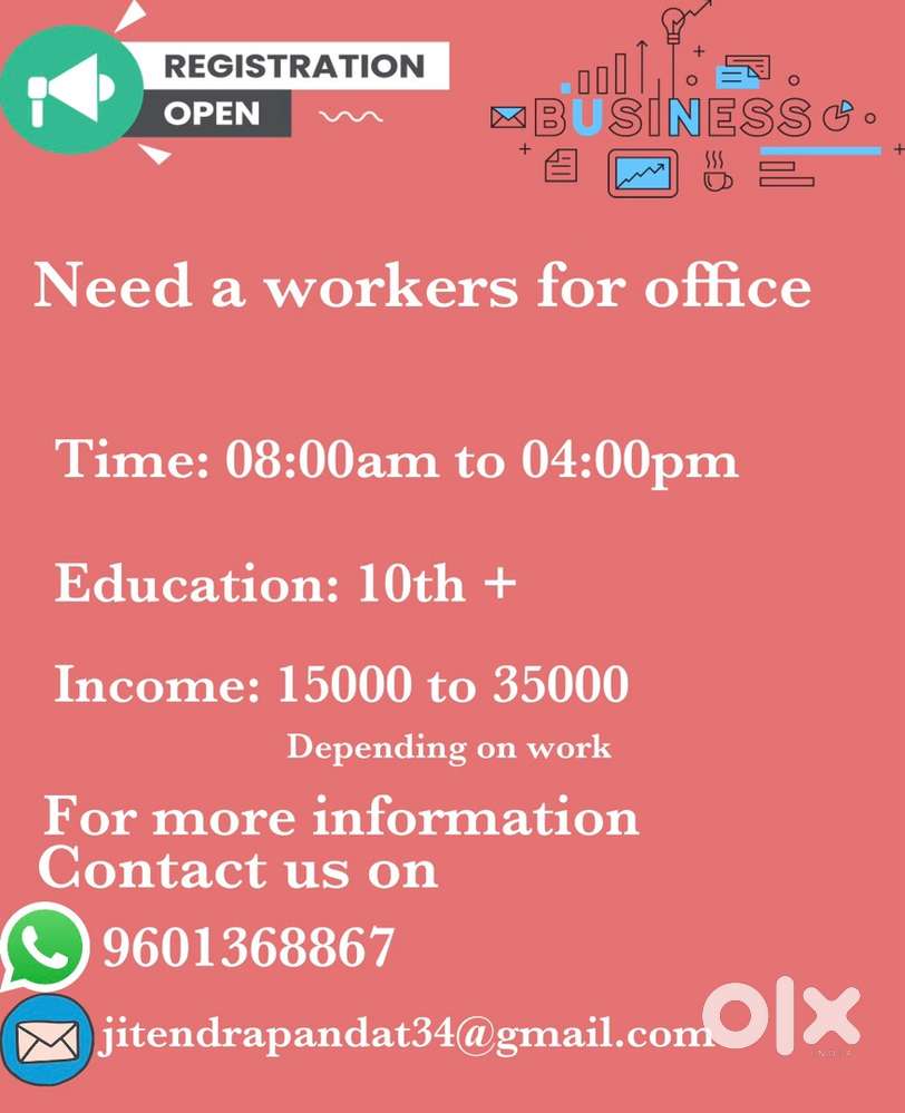 - ₹ 15000 - 35000 | MonthlyNeed worker for office132 Feet Ring Road, AhmedabadToday