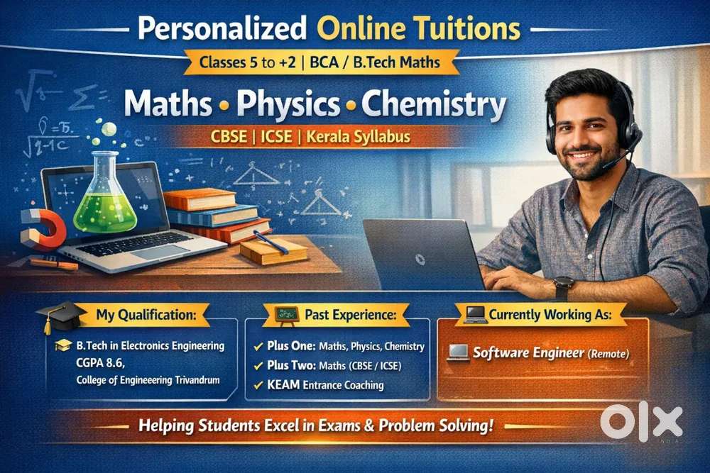 - ₹ 200 - 500 | HourlyOnline Tuitions for Classes 5, 6, 7, 8,9,10, +1, +2, KEAM prep and BCACommonwealth Enclave, PalakkadToday