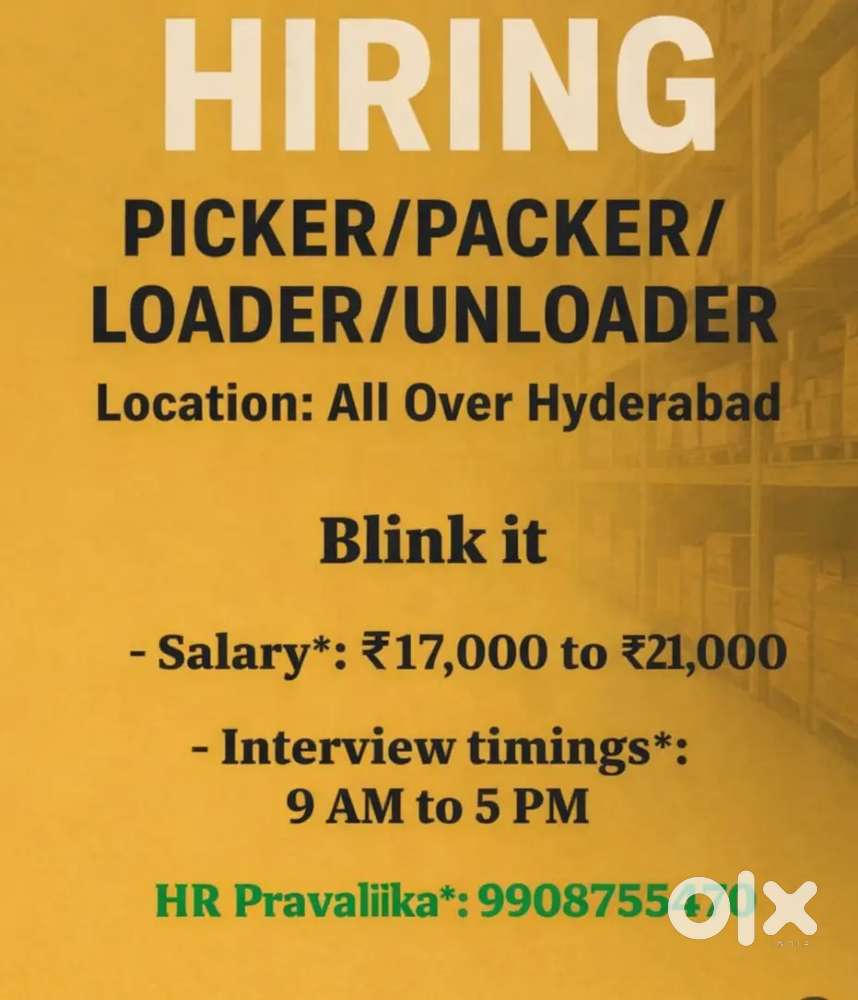 - ₹ 18000 - 20000 | MonthlyHyd vij location job vacancy delivery boy, picking packing,ware houseKondapur, HyderabadToday