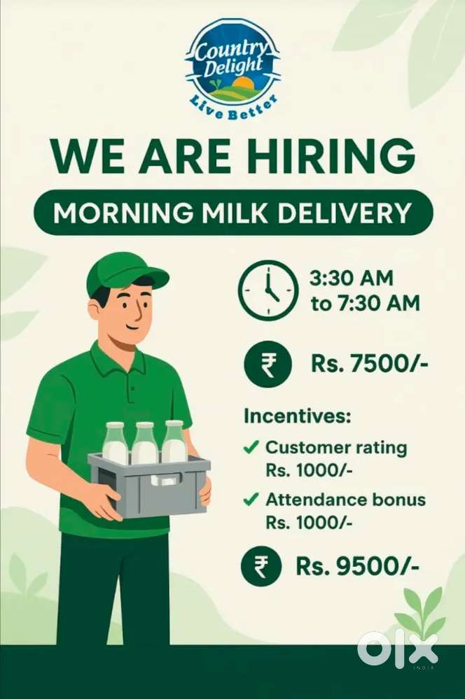 - ₹ 7500 - 9500 | MonthlyMilk deliveryHafeezpet, HyderabadToday