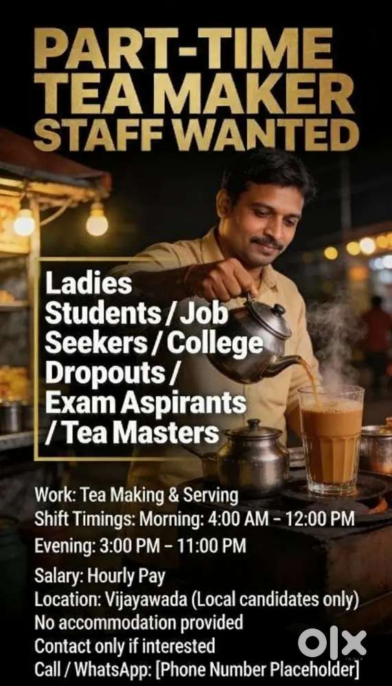 - ₹ 20000 - 24000 | MonthlyTea masterAjit Singh Nagar, Vijayawada18 Dec