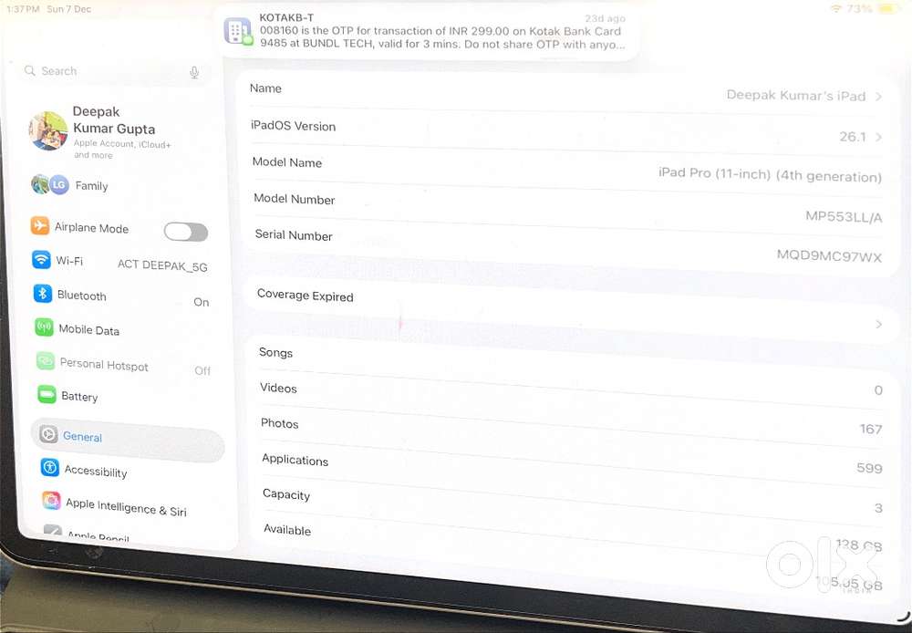 - ₹ 20,999Apple iPad 8th Gen \ Apple A12 Bionic Chip \ Only Wi-Fi \ Used OneBegur, Bengaluru17 Dec