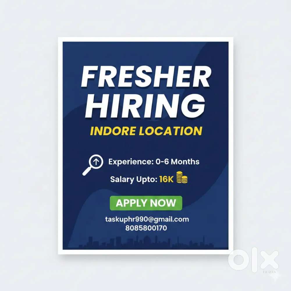 - ₹ 15000 - 21000 | MonthlyAll types of Jobs are available hereVijay Nagar, IndoreYesterday