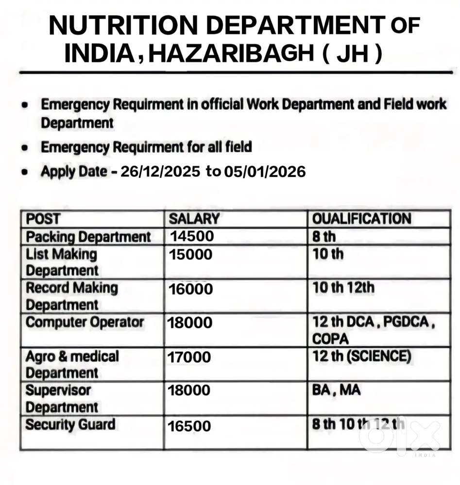 - ₹ 21500 - 42900 | MonthlyOfficials Work Direct Joining For 10th & 12th PassShaheed Chowk, Gumla19 Dec