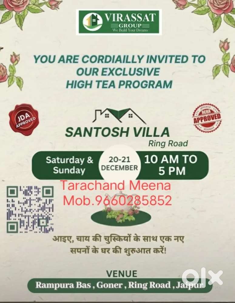 - ₹ 32,950JDA APPROVED PLOT SALE ON WATIKA LAKHNA ROAD SANGANER JAIPURSanganer, Jaipur17 Dec
