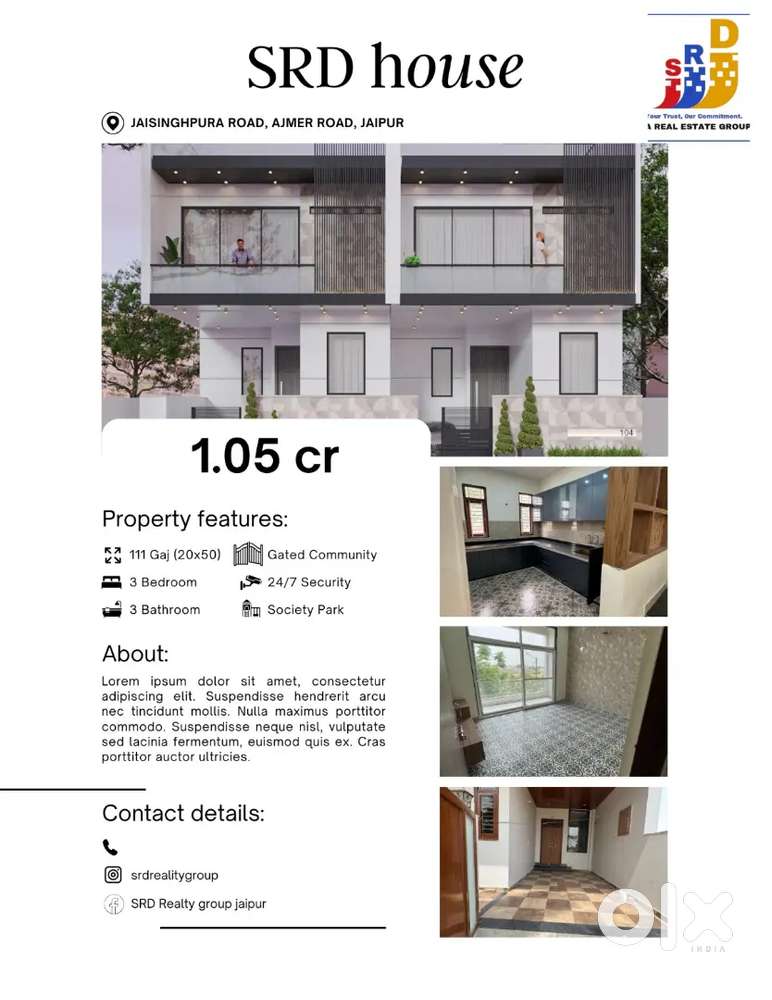 - ₹ 1,05,00,0003 BHK - 3 Bathroom - 2400 sqftLuxury duplex villa jda approvedBhankrota, JaipurYesterday