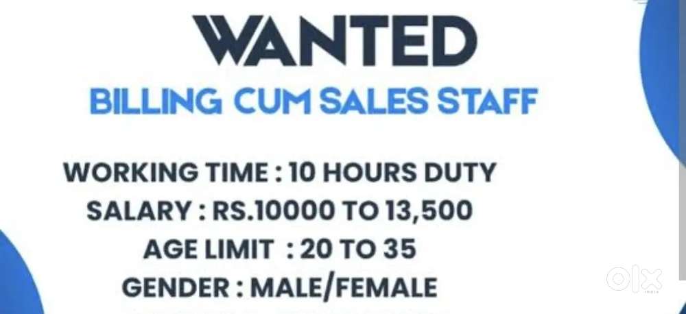 - ₹ 15000 - 20000 | MonthlyWANTED MALE OR FEMALE FOR BILLINGDPC Lane, SalemToday