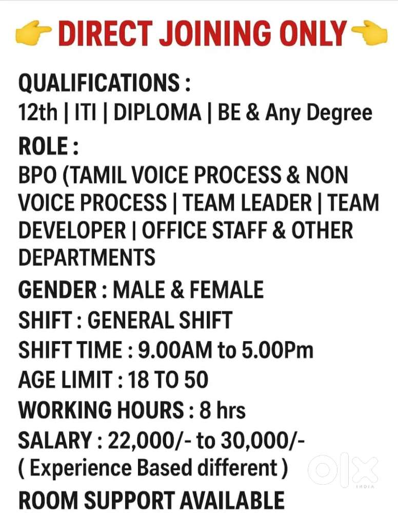 - ₹ 20000 - 25000 | Monthlyபுதியதாக திறக்கப்பட்ட Chennai SK associates நிறுவனத்திற்கு ஆட்கள் தேவைKrishnagiri Colony, Hubballi4 days ago