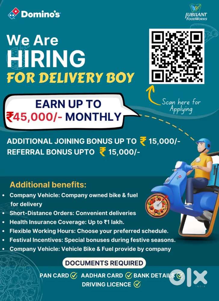 - ₹ 4000 - 5000 | WeeklyDomino’s Pizza Delivery PersonKishan Nagar, HaridwarYesterday