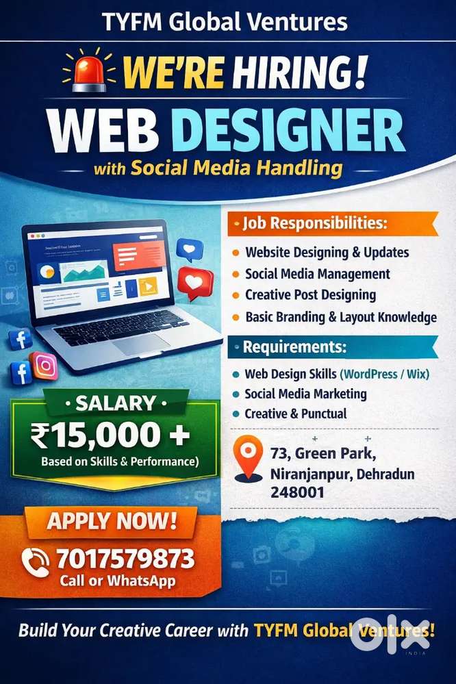- Today₹ 15000 - 18000 | MonthlyWeb Designer Social media HandlingNiranjan Pur, Dehradun