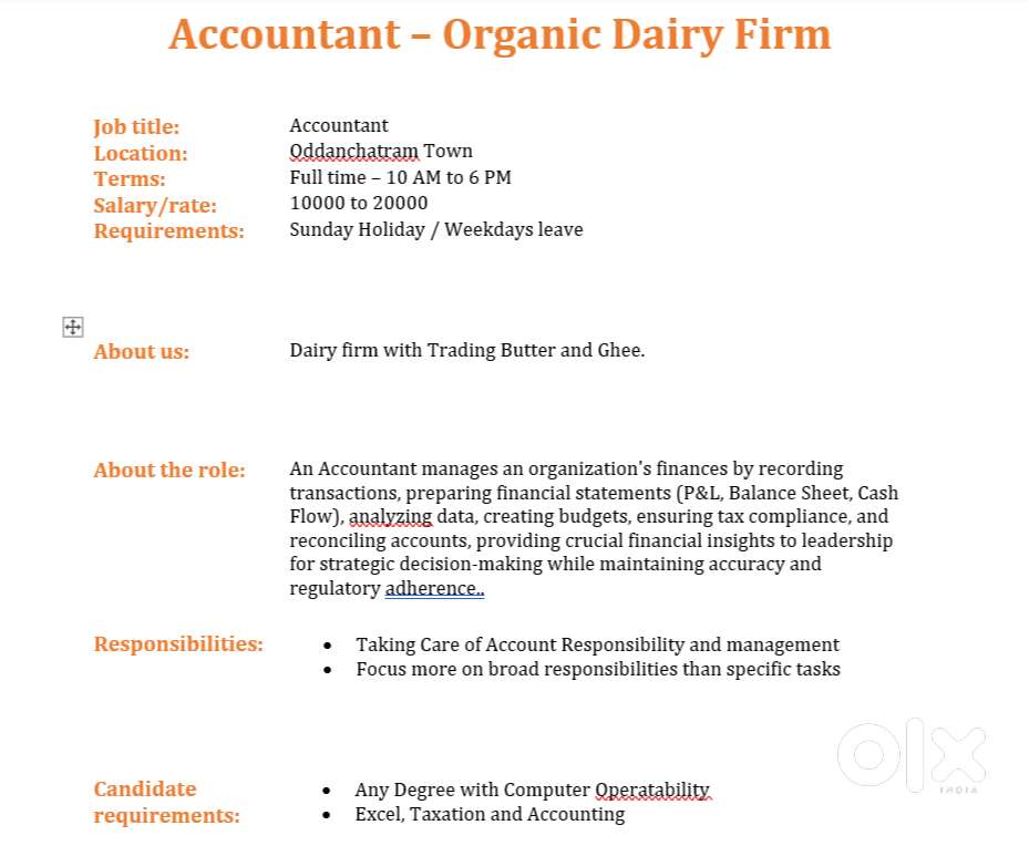 - ₹ 10000 - 20000 | MonthlyAccountantAthicombai, OddanchatramToday