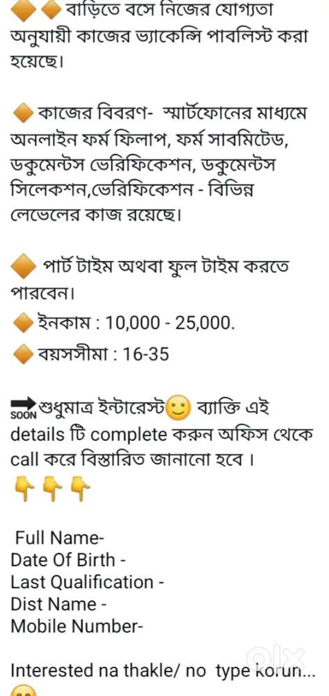 - ₹ 4700 - 4700 | WeeklyWork froom homeGopalmath, Durgapur21 Nov