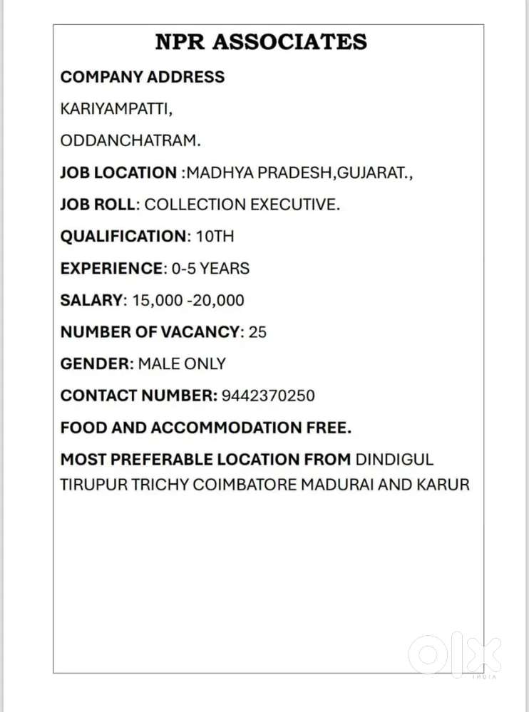 - ₹ 15000 - 20000 | MonthlyCollection jobAthicombai, OddanchatramToday