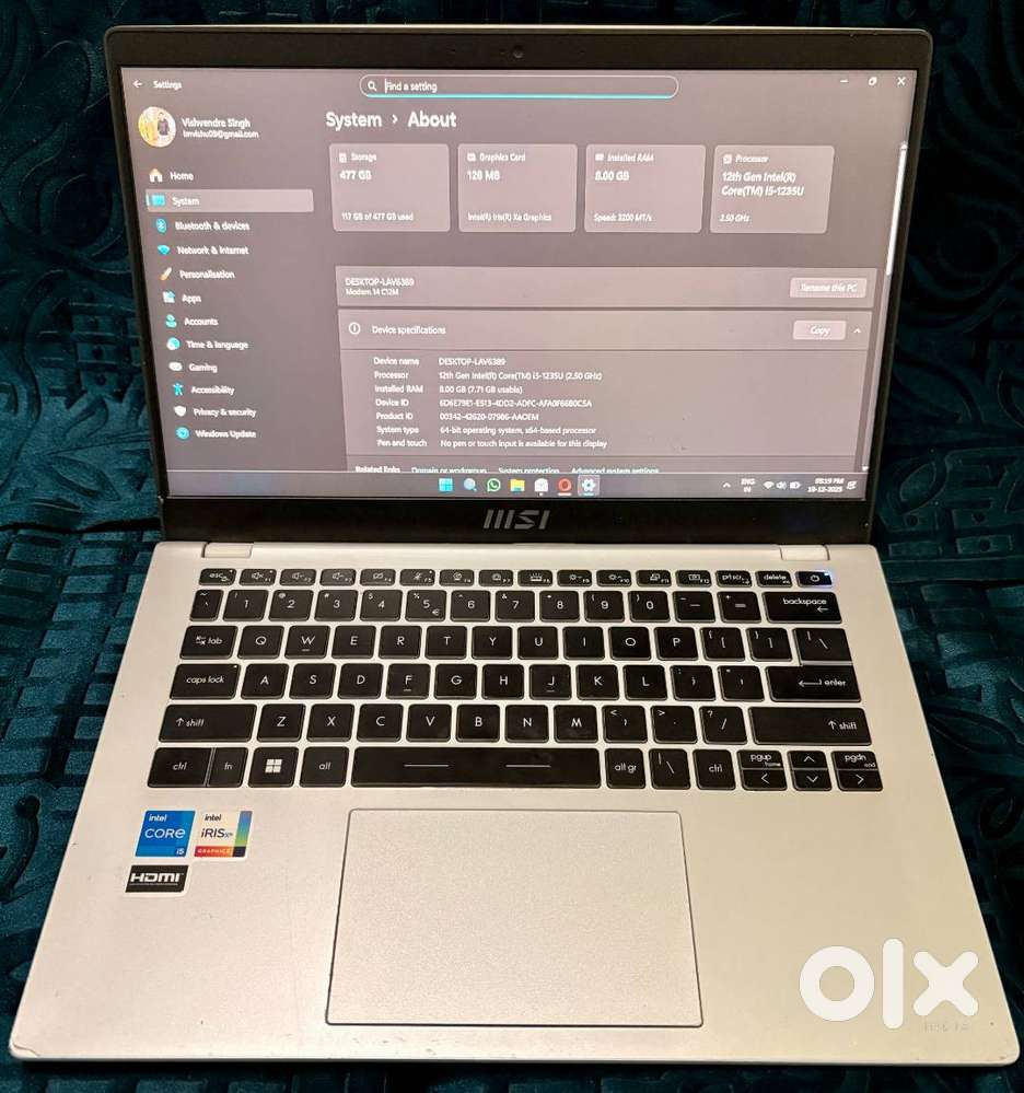 - ₹ 24,000MSI Modern 14 i5 12th Gen 8GB RAM 512GB SSD Like New ConditionBhur, BulandshahrToday