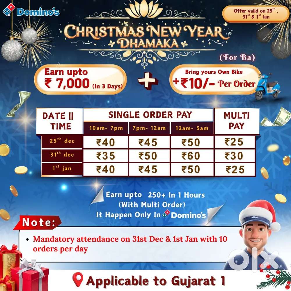 - ₹ 18500 - 22000 | WeeklyAhmedabad Pizza Delivery Boy Job Biker RequiredMirzapur, AhmedabadToday