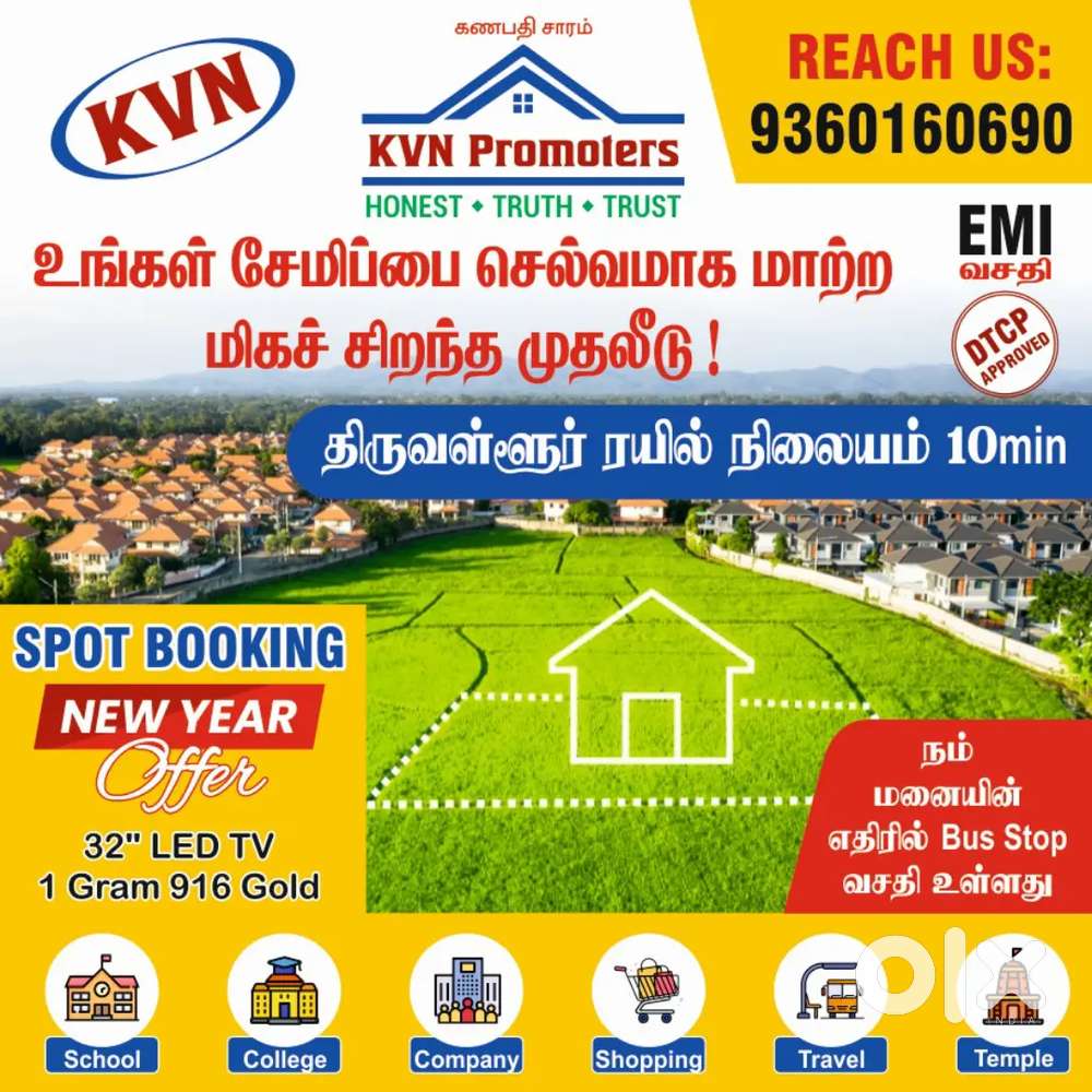 - ₹ 2,00,000Kvnpromoters EMI Plot in ThiruvallurChennai Central, Chennai4 days ago
