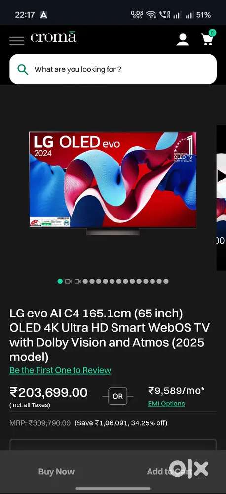 - ₹ 1,25,000LG OLED C4 65 inch in warranty with wall mountTalwandi, KotaToday