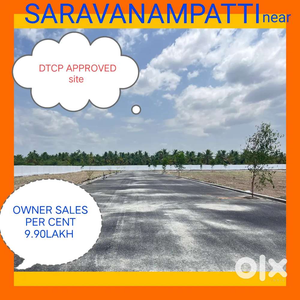 - ₹ 9,90,000SARAVANAMPATTI DTCP APPROVED SITE SALES PER CENT 9.90LAKH OWNER SALESSaravanampatti, Coimbatore12 Dec