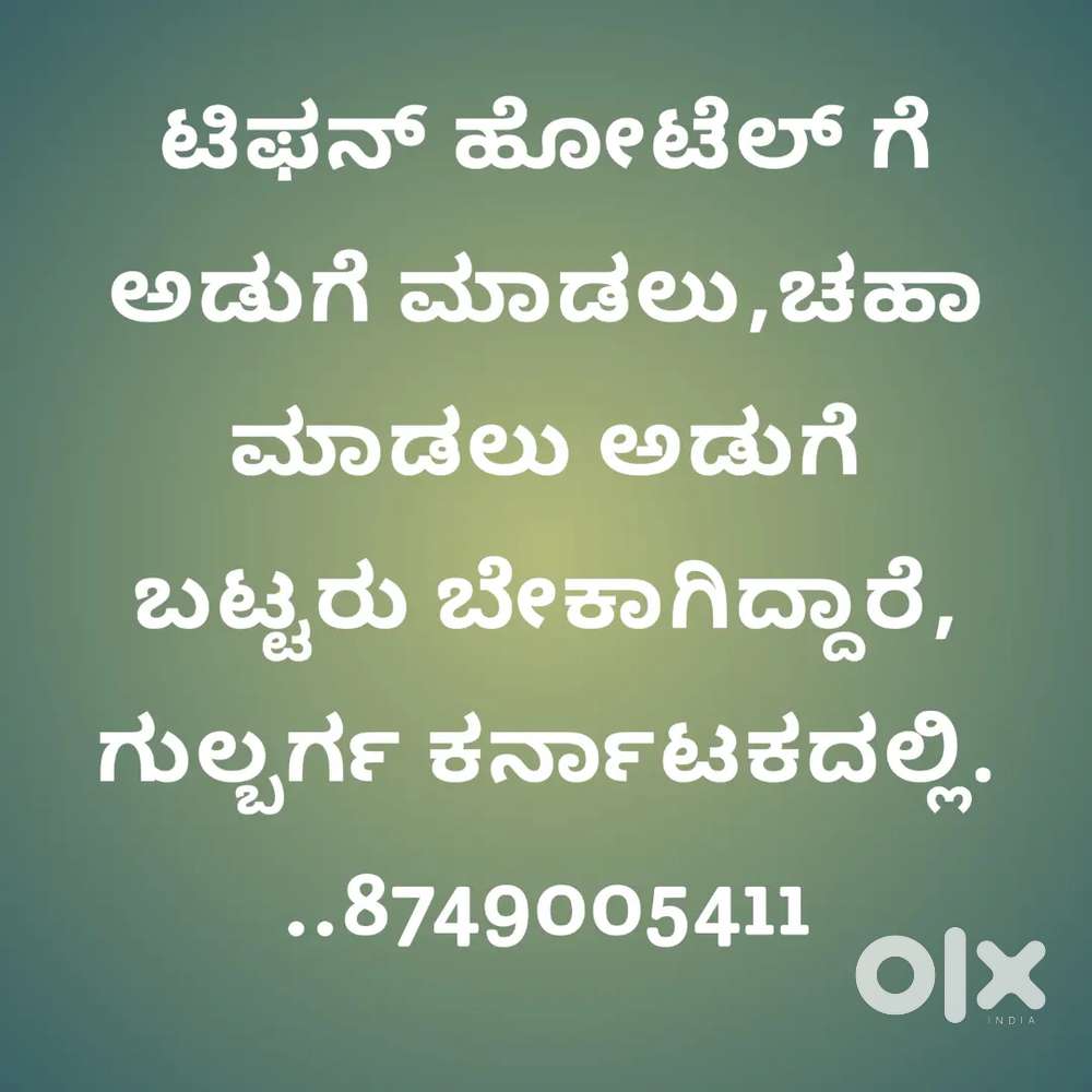 - ₹ 8000 - 20000 | MonthlyRequired for cook and (cook, waiter,Tea maker)for my Tiffan hotelMilebar, JevargiToday