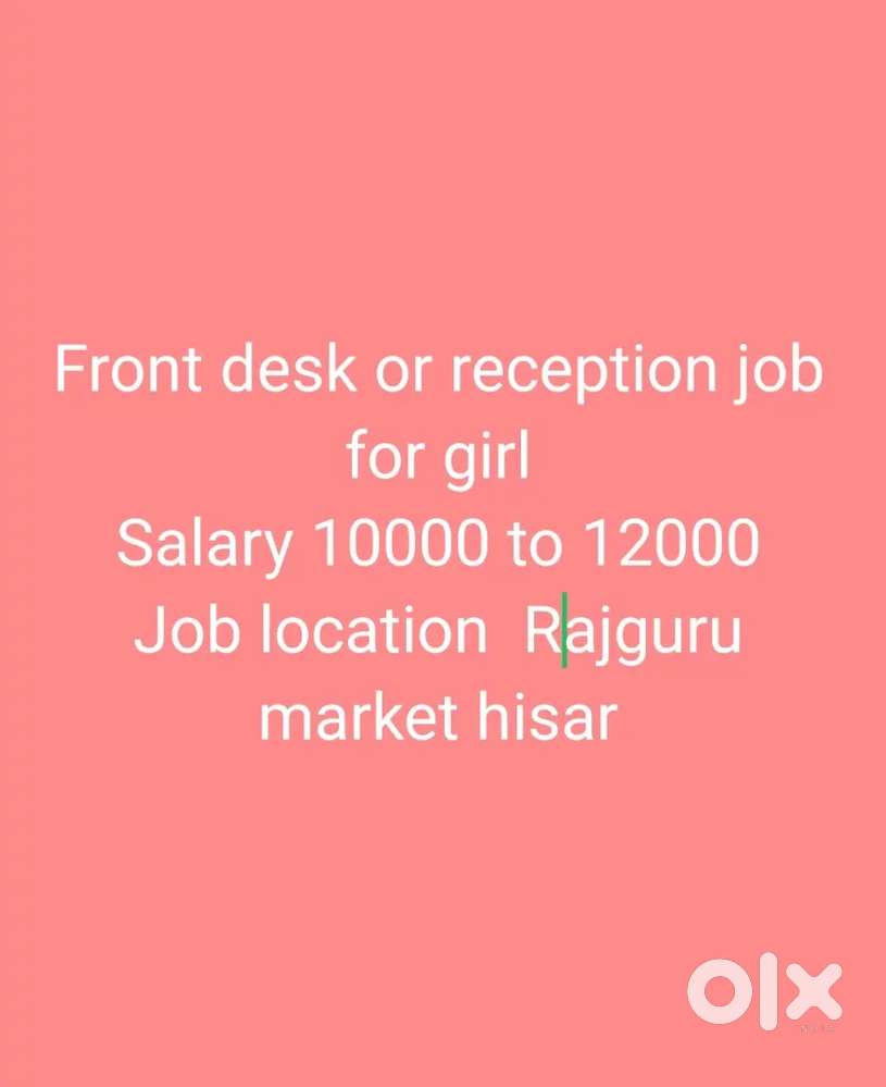 - ₹ 10000 - 12000 | MonthlyFront desk or reception for girlDogra Mohalla, HisarToday