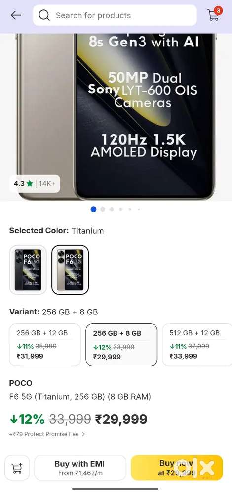 - ₹ 16,700POCO F6 (8GB RAM / 256GB storage)Meghpar Kumbhardi Siddeshwar Park, Gandhidham2 days ago