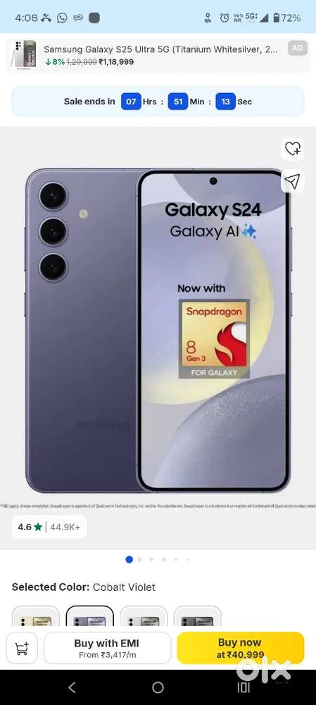 - ₹ 38,000Galaxy s 24 8/128Vashi, Navi Mumbai10 Dec