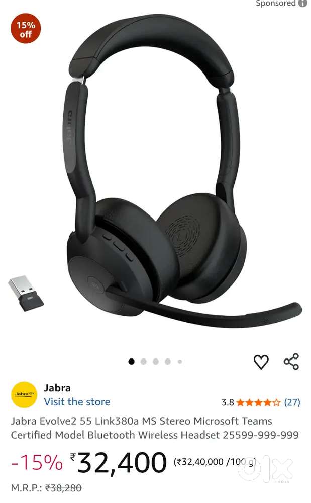 - ₹ 1,999Jabra Evolve2 65 wireless HeadphonesMagrath Road, Bengaluru17 Dec
