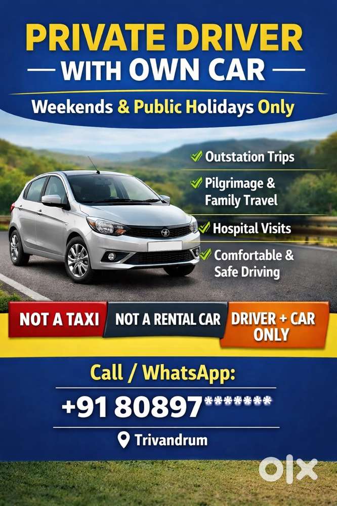 - Private Driver with Own Car Available - Weekends and Holidays (TIAGO)Thiruvananthapuram, KeralaYesterday