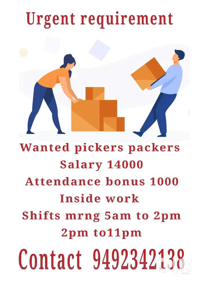 - ₹ 15000 - 16000 | MonthlyWanted picker and packers at Ram nagarRam Nagar, VisakhapatnamToday