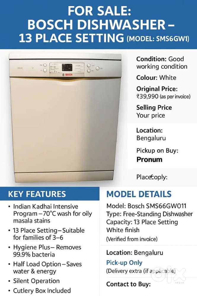 - ₹ 25,000Bosch DishwasherChannasandra Near Whitefield, Bengaluru4 days ago