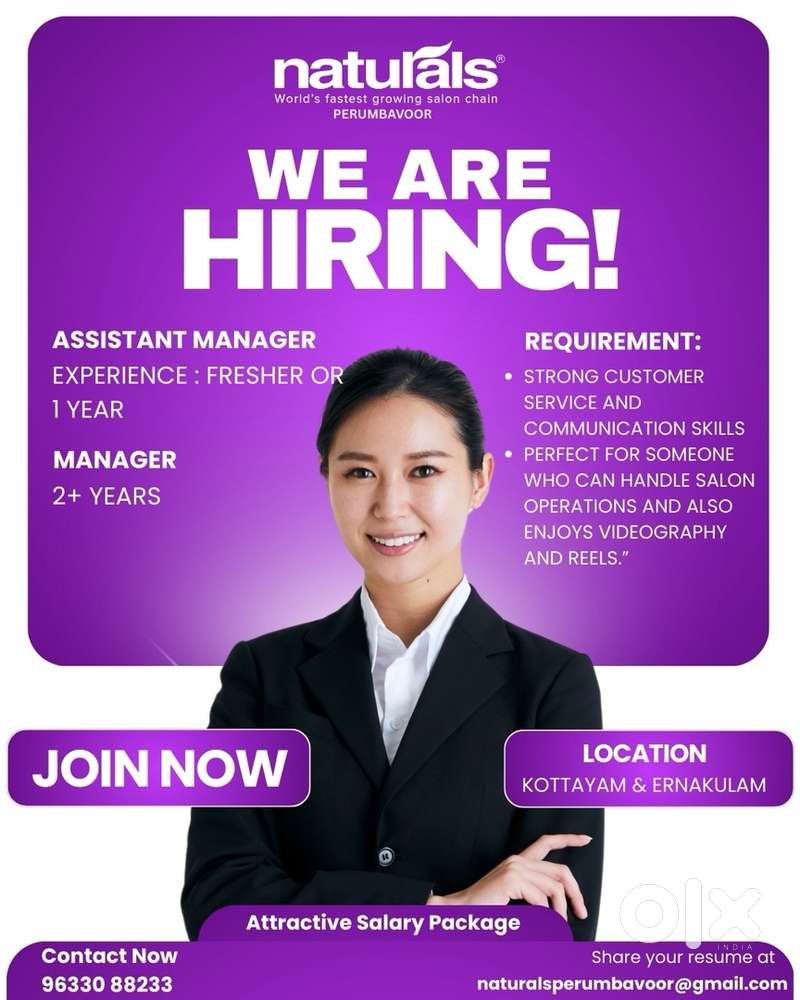 - ₹ 12000 - 25000 | MonthlyAssistant manger for unisex saloonKakkanad, KochiToday